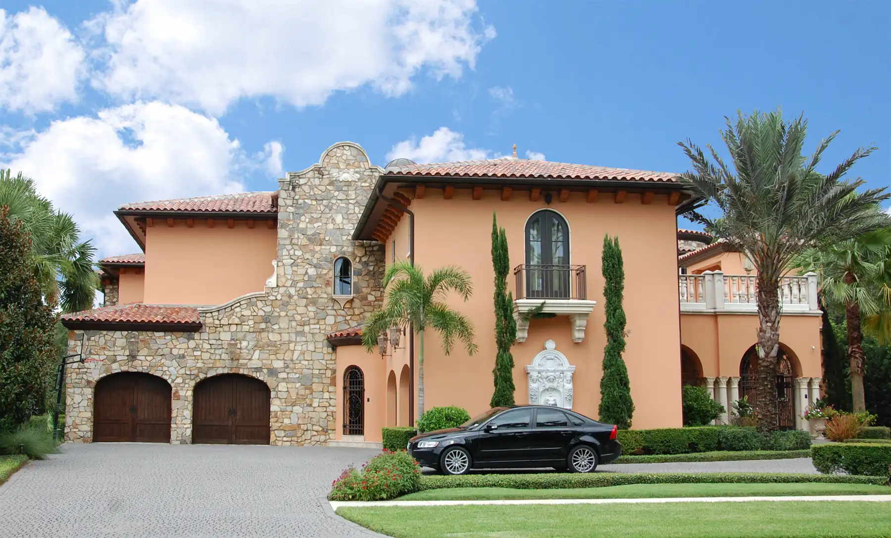 This amazing deluxe home has it all! From spacious outdoor living areas to the more intimate Court Yard and Garden areas where you can relax, entertain your friends and family, or simple enjoy a quiet time. Besides its four car garages, this home also has room for a Golf Cart on the ½ garage by the Garden. The detach 576 s.f. Studio also acts as a second Suite / Mother-in law room. Enjoy the interior and exterior balconies, entertain in door in the Sky Box Club Room or have some time to yourself on the Study or Library. Use the elevator to the second floor for you convenience, or any of the two stair cases. One in a classical Rotonda, and the other on a Dome top tower. Have a movie night at the Theater Room, or relax at the Sauna after an exercise section in the Exercise Room.