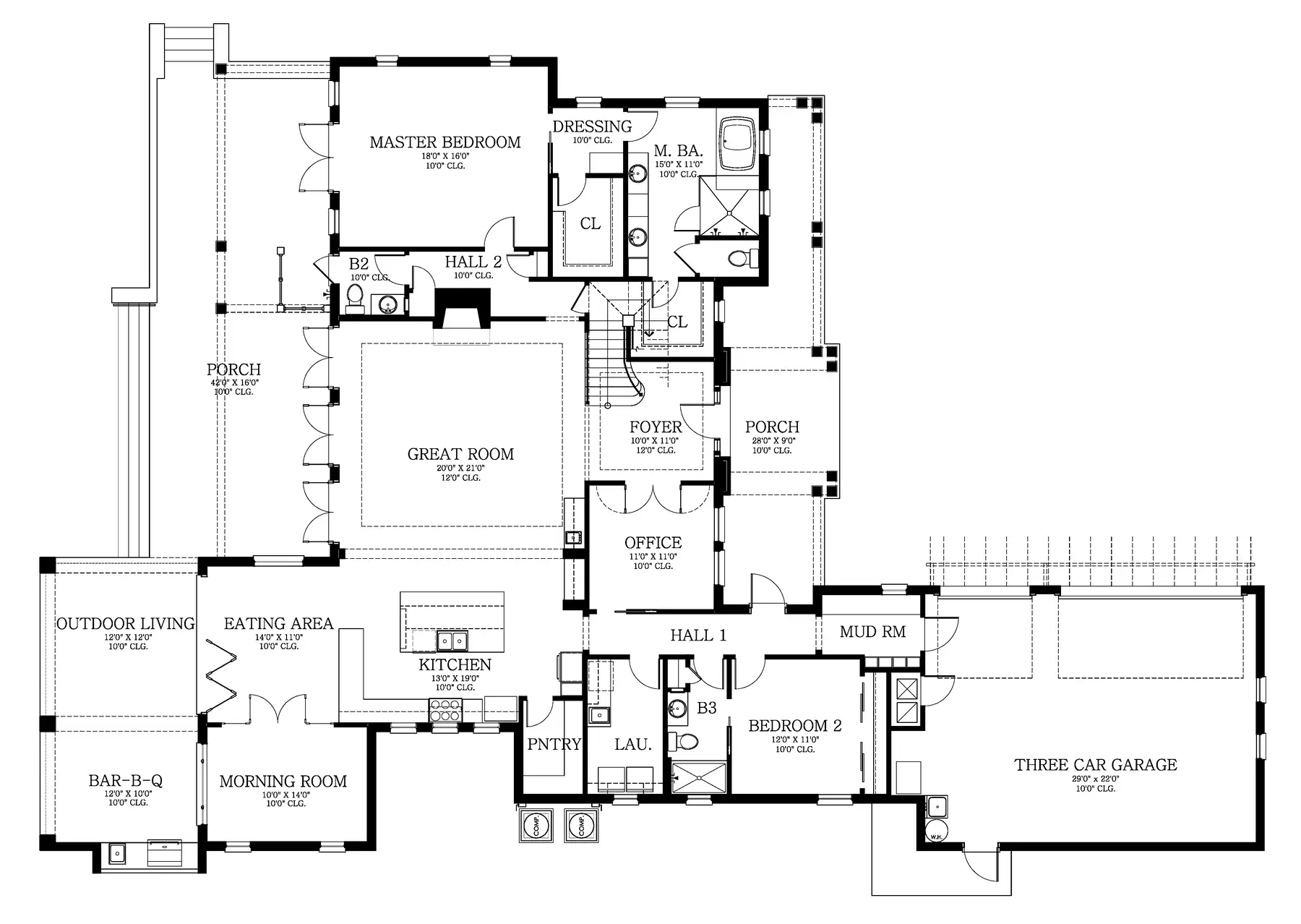 • Floor Plan(s): Complete with dimensions and notes of all elements. On our high-end plans we provide architectural and structural floor plans, as typical part of our sets to avoid clutter and for easy construction.