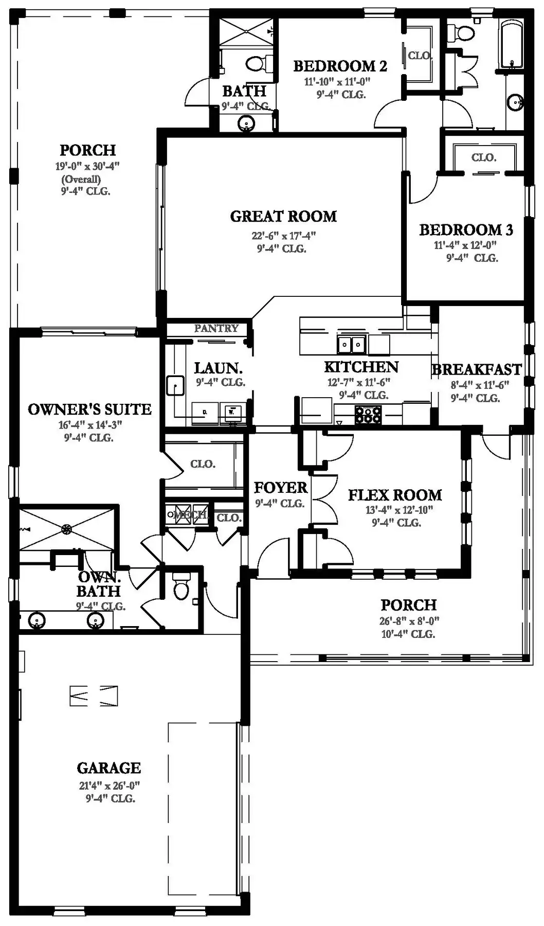 • Floor Plan(s): Complete with dimensions and notes of all elements. On our high-end plans we provide architectural and structural floor plans, as typical part of our sets to avoid clutter and for easy construction.