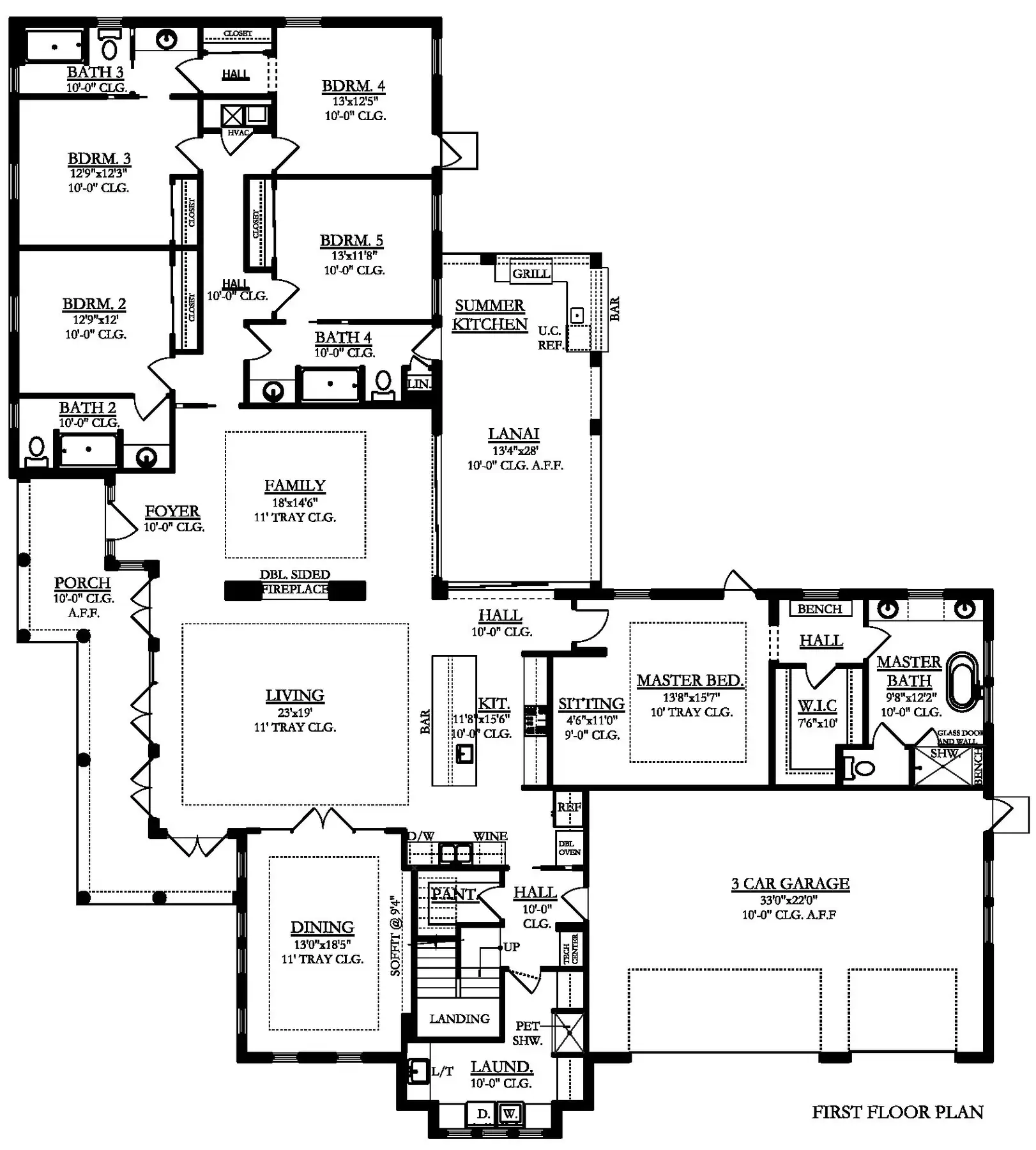 • Foundation Plan: Slab plan complete with dimensions, foundation footing details, general foundation notes and Schedules. Shows and locate plumbing fixtures (this is not a plumbing plan).