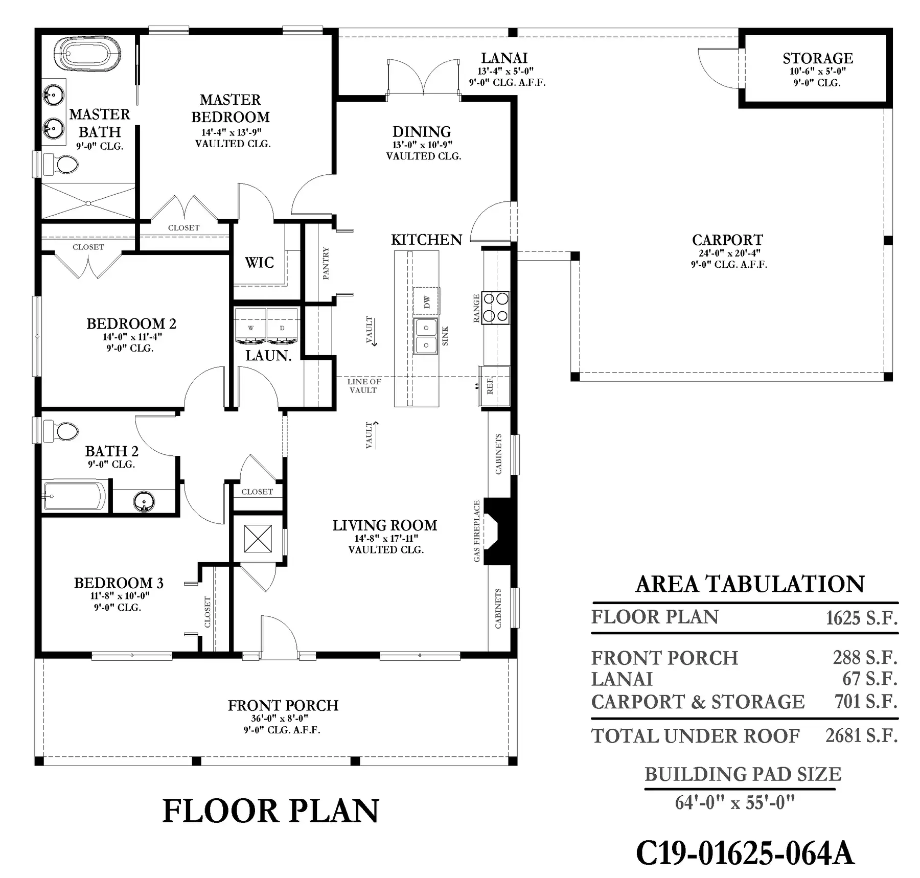 • Foundation Plan: Slab plan complete with dimensions, foundation footing details, general foundation notes and Schedules. Shows and locate plumbing fixtures (this is not a plumbing plan).