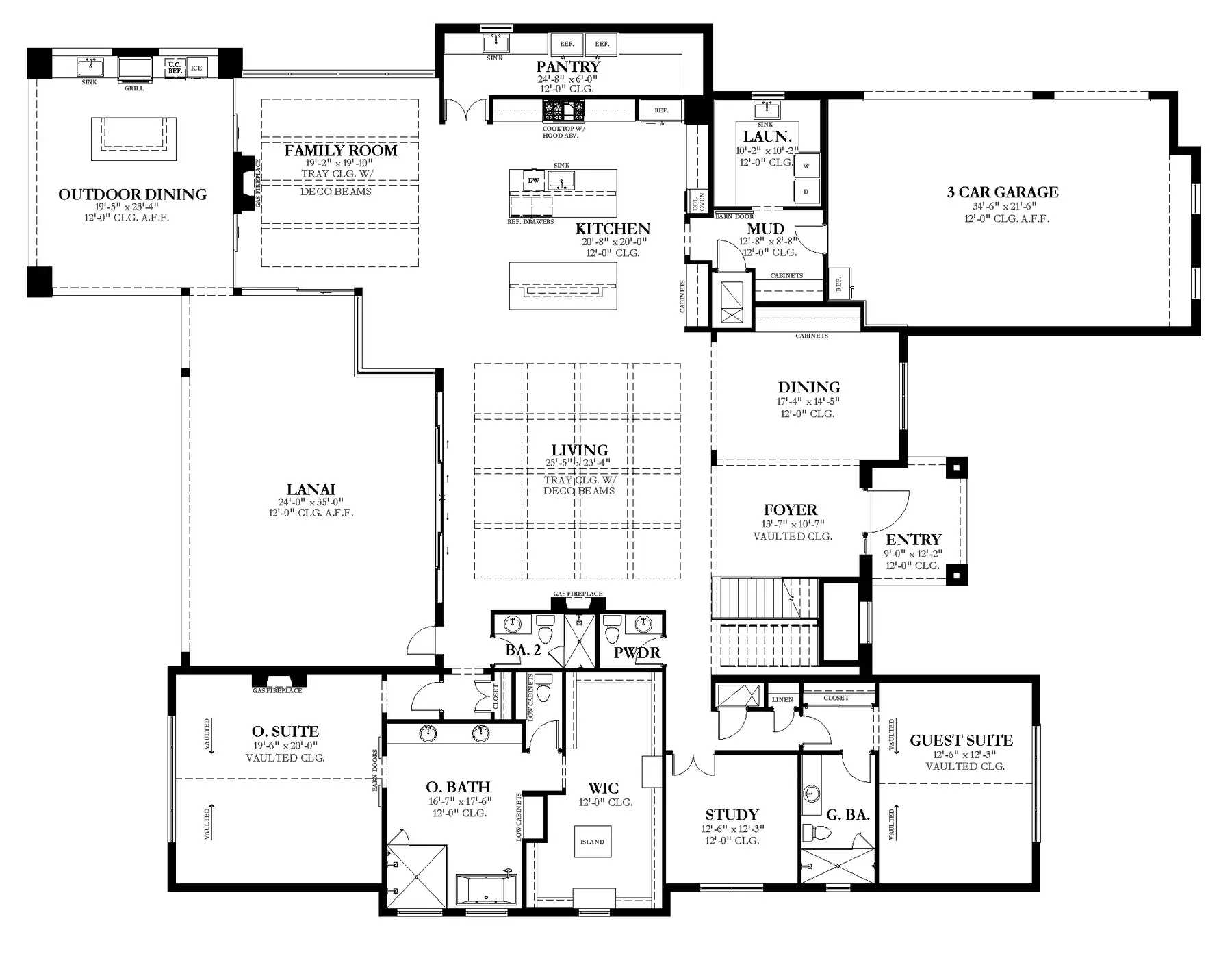 • Floor Plan(s): Complete with dimensions and notes of all elements. On our high-end plans we provide architectural and structural floor plans, as typical part of our sets to avoid clutter and for easy construction.