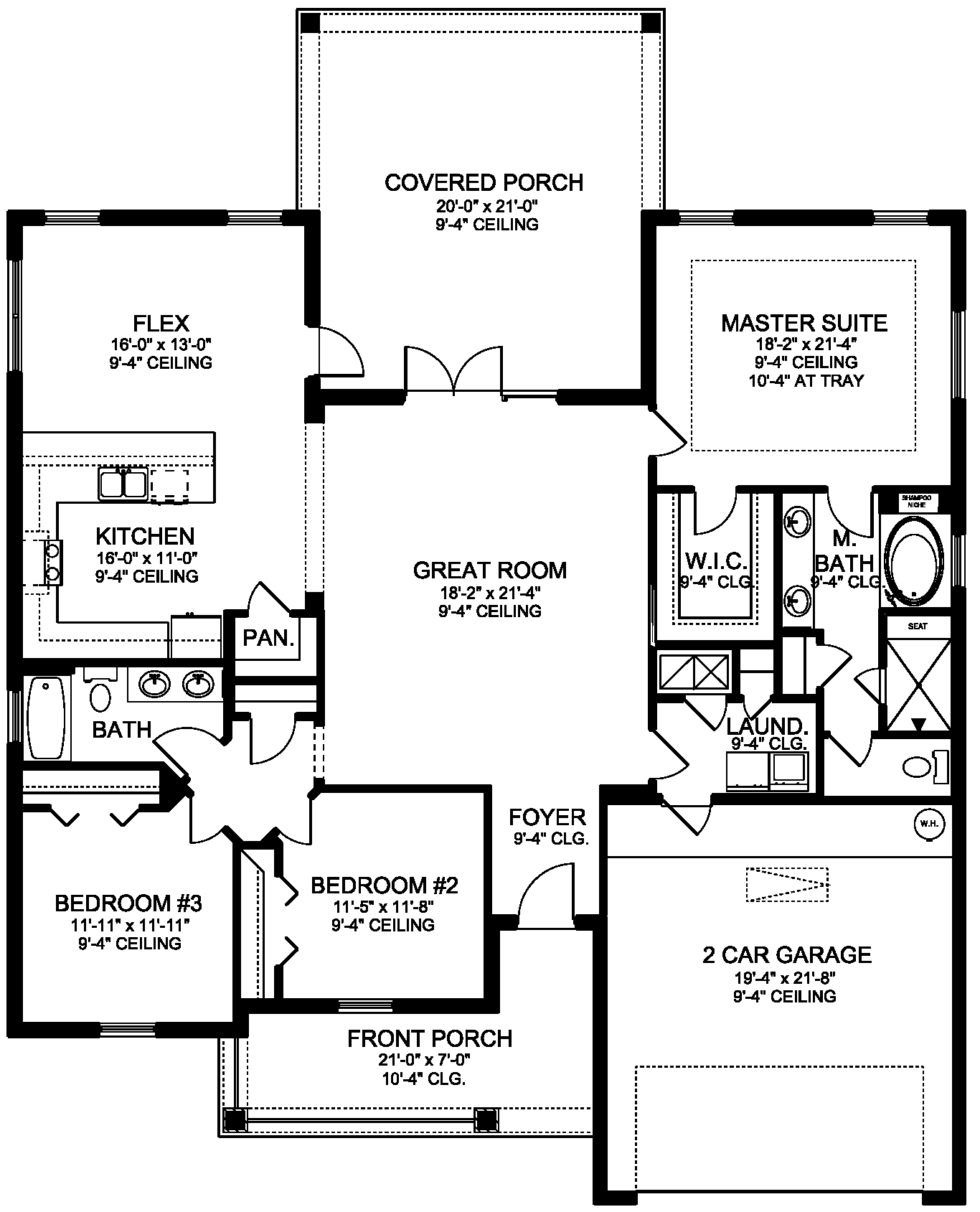 • Foundation Plan: Slab plan complete with dimensions, foundation footing details, general foundation notes and Schedules. Shows and locate plumbing fixtures (this is not a plumbing plan).