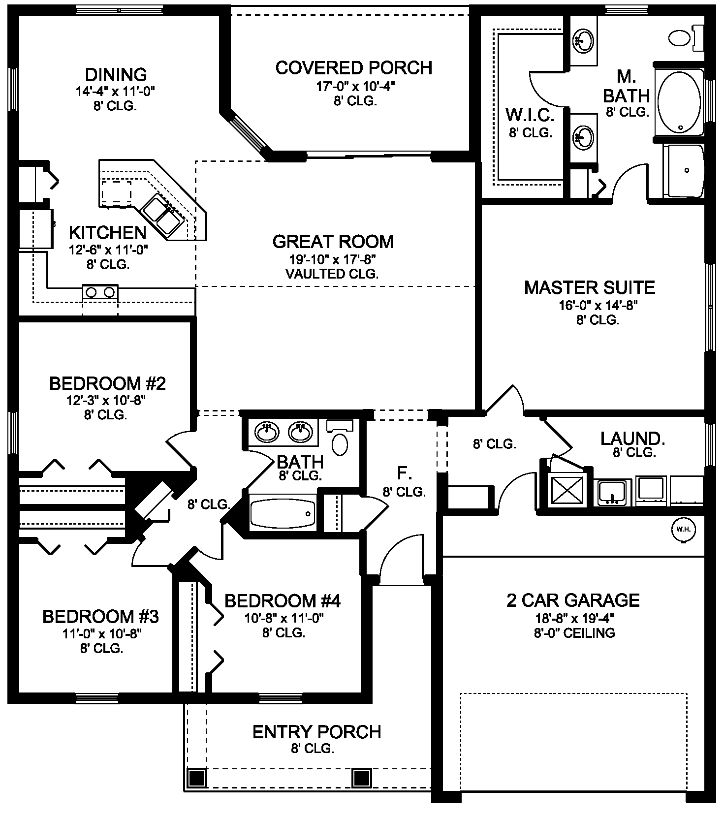 • Foundation Plan: Slab plan complete with dimensions, foundation footing details, general foundation notes and Schedules. Shows and locate plumbing fixtures (this is not a plumbing plan).