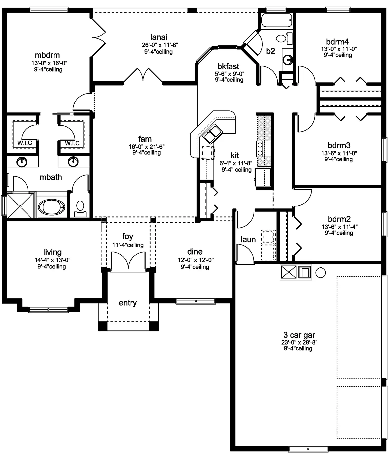 • Foundation Plan: Slab plan complete with dimensions, foundation footing details, general foundation notes and Schedules. Shows and locate plumbing fixtures (this is not a plumbing plan).