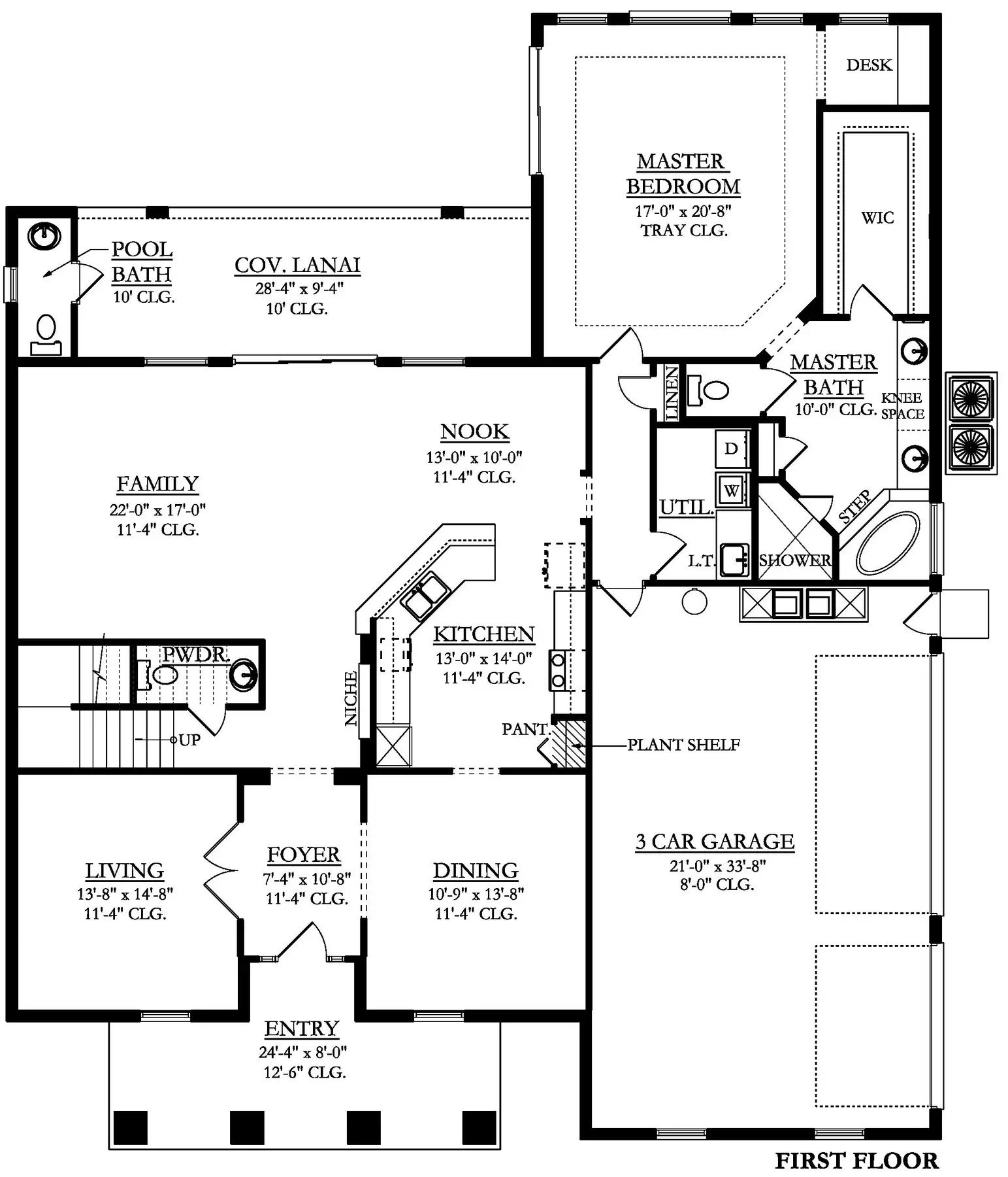 • Foundation Plan: Slab plan complete with dimensions, foundation footing details, general foundation notes and Schedules. Shows and locate plumbing fixtures (this is not a plumbing plan).