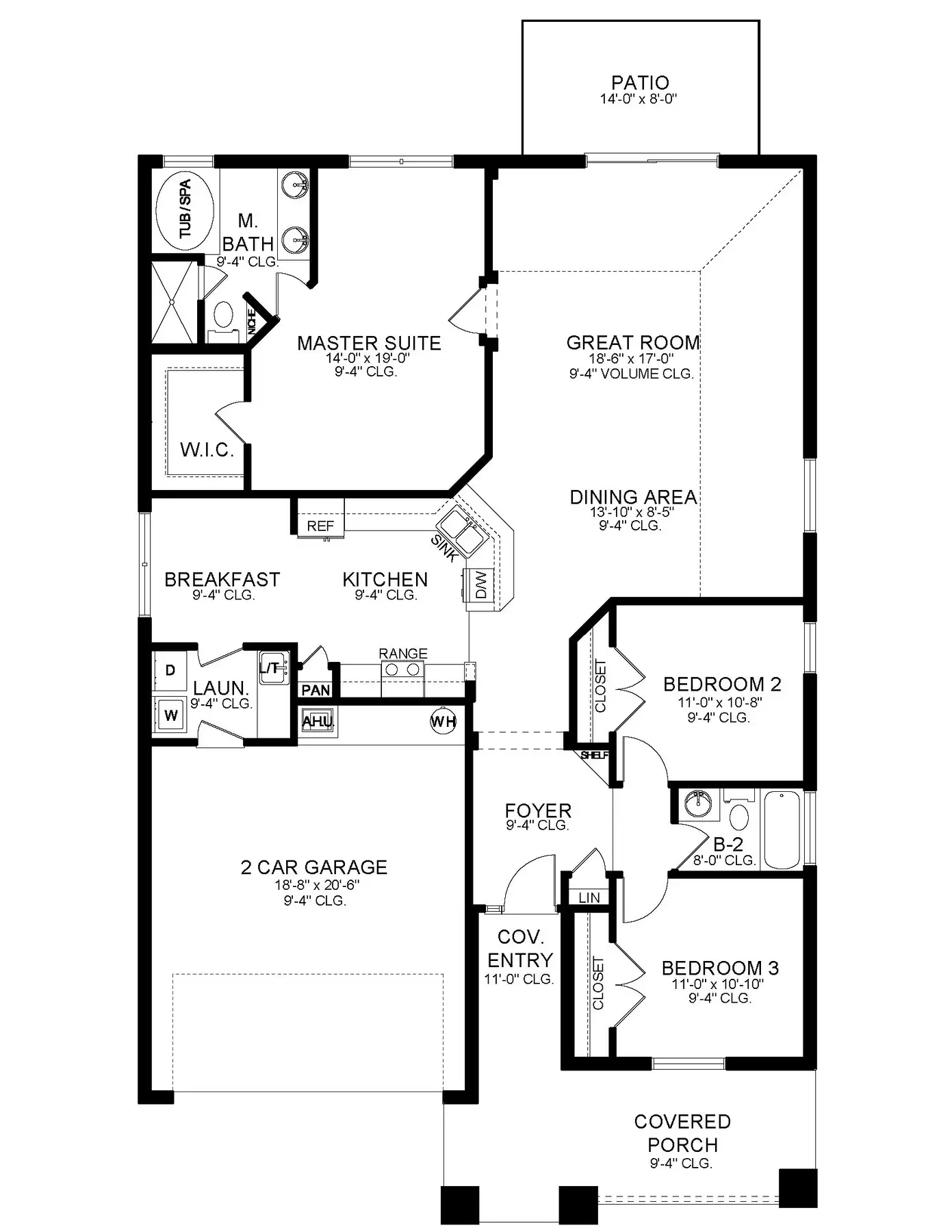 • Foundation Plan: Slab plan complete with dimensions, foundation footing details, general foundation notes and Schedules. Shows and locate plumbing fixtures (this is not a plumbing plan).