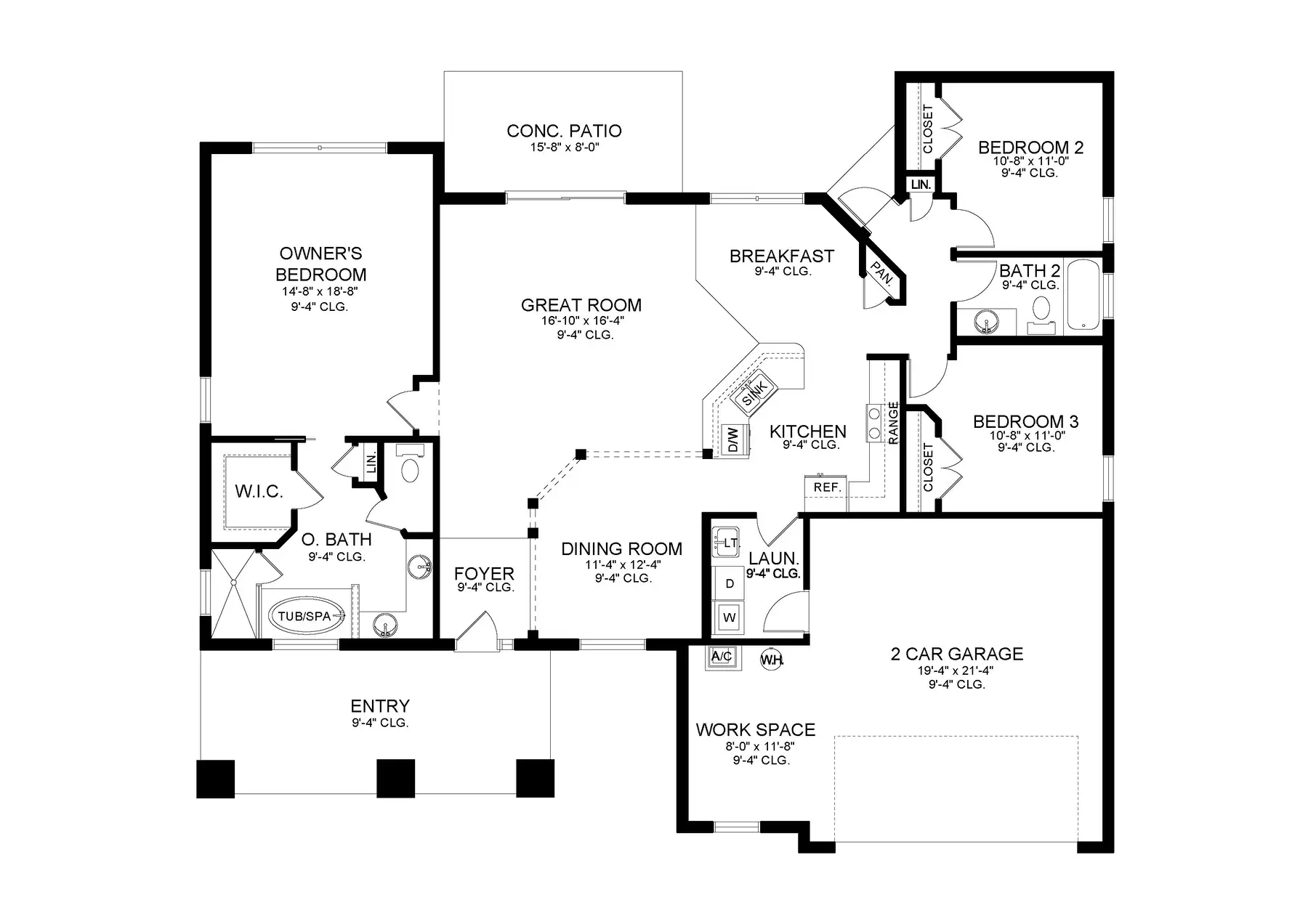 • Foundation Plan: Slab plan complete with dimensions, foundation footing details, general foundation notes and Schedules. Shows and locate plumbing fixtures (this is not a plumbing plan).
