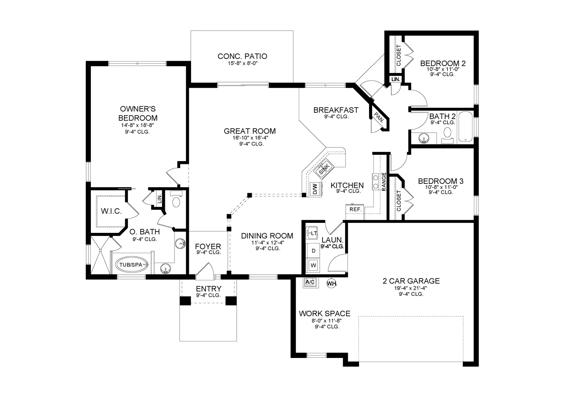 • Foundation Plan: Slab plan complete with dimensions, foundation footing details, general foundation notes and Schedules. Shows and locate plumbing fixtures (this is not a plumbing plan).